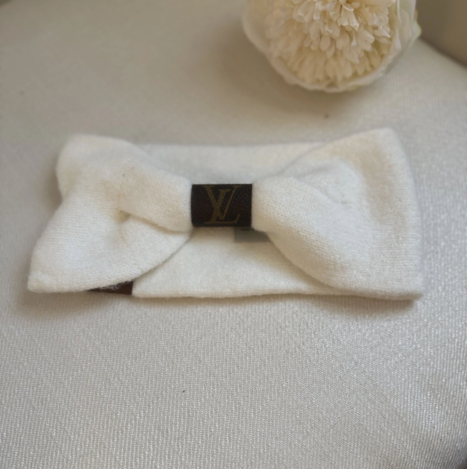 We took a pre-loved bag and turned it into something beautiful again. Get your own little piece of luxury. 61% recycled Polyester, 24% Polyester, 6% cashmere, 5% wool, 4% spandex 19″-22″ inch circumference All designer fabric is verified by a reputable third party app that provides a Proof of Authentication Certificate. Each item is handcrafted and perfectly unique, so no two items are exactly the same. We are not affiliated, associated, or in any way officially connected with Louis Vuitton or any of its subsidiaries or affiliates.