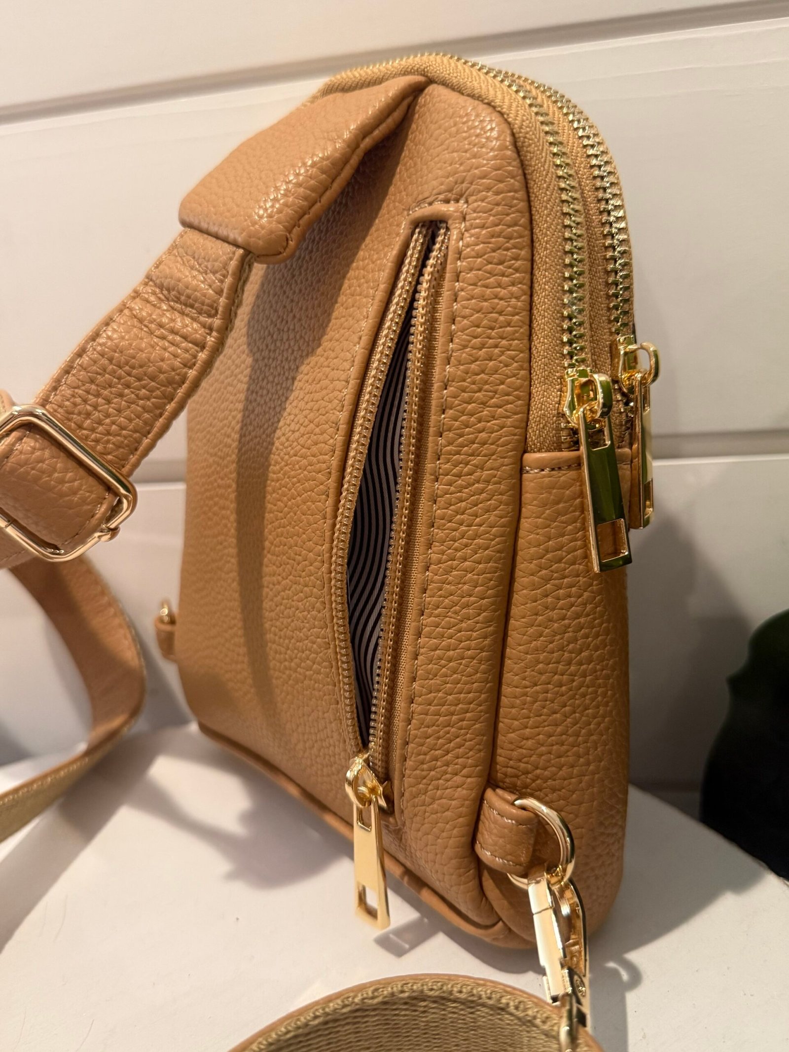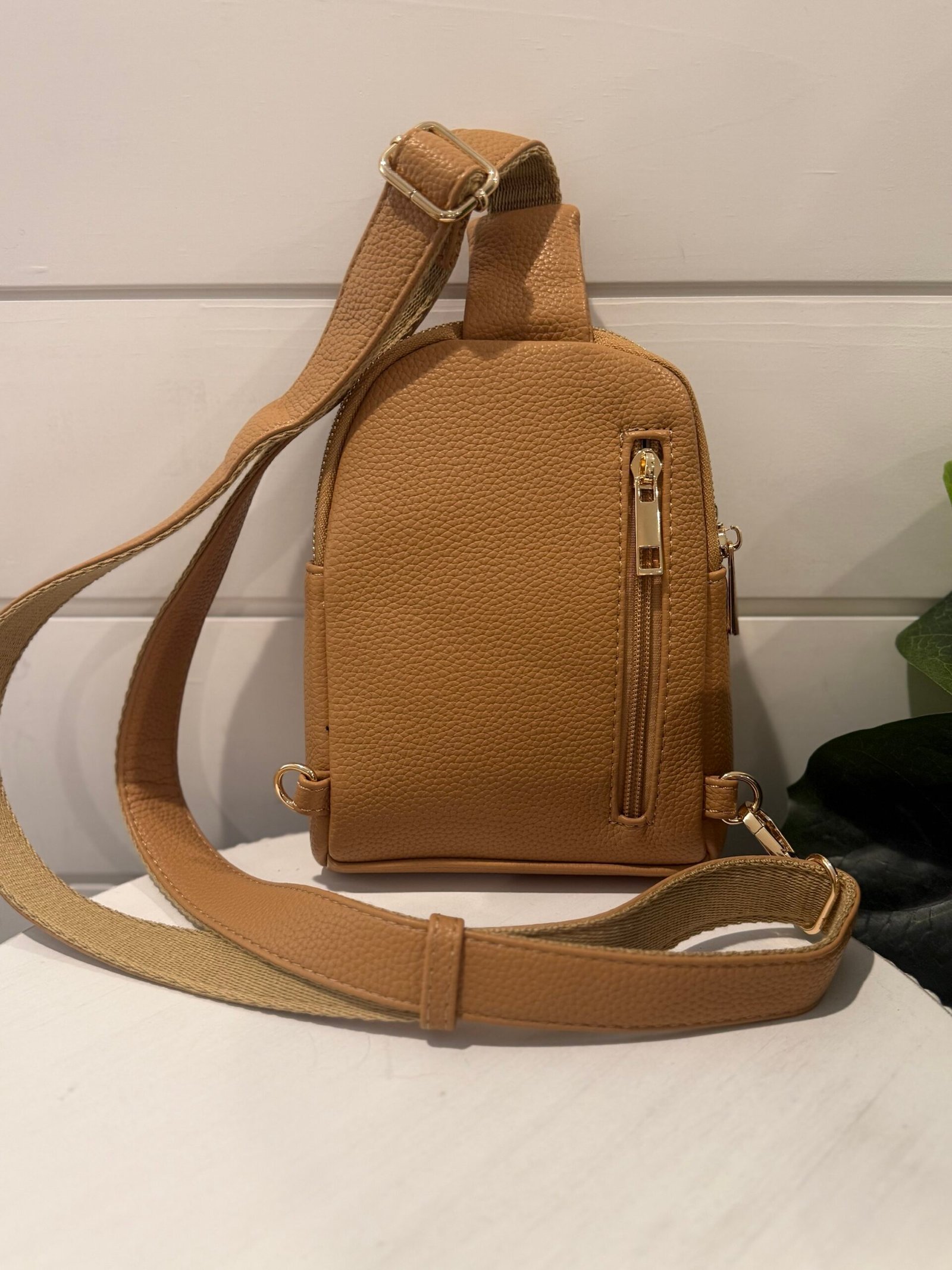 - Can be worn on chest as a sling or lower as a crossbody